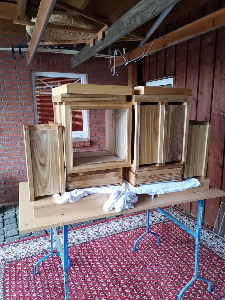 Dieses Jahr konnte ich 4 weitere Beuten günstig erwerben, etwas aufgeppt und dem Bienenstand hinzugefügt.